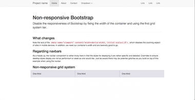 Bootstrap3からモバイルファーストの考え方になりましたが、以上の方法でレスポンシブ対応じゃなくすることができます。 詳しくは、Disabling responsivenessを見てください。