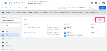 Google Tag Managerのすごく初歩的なことの手順です。画面を3年ぶりに開いたらわからなくなっていたので、メモ。